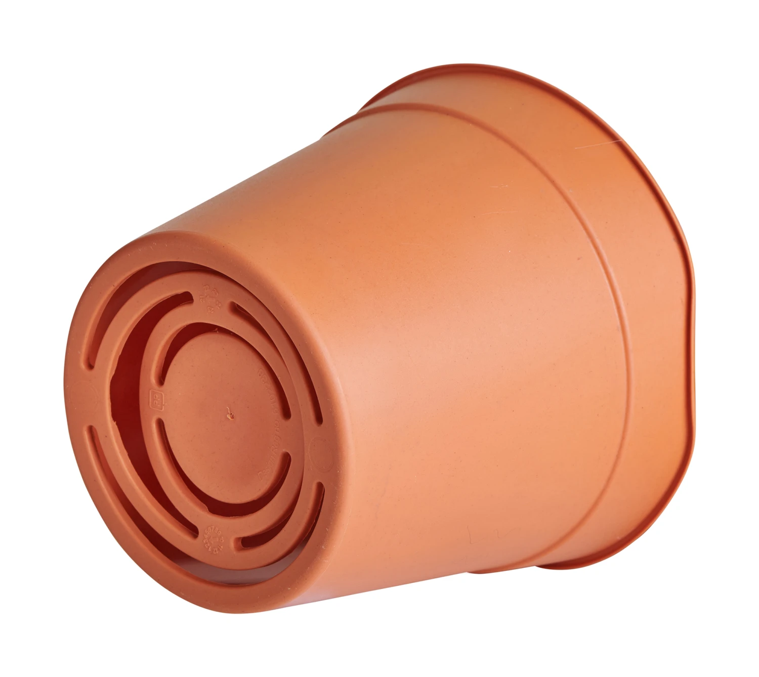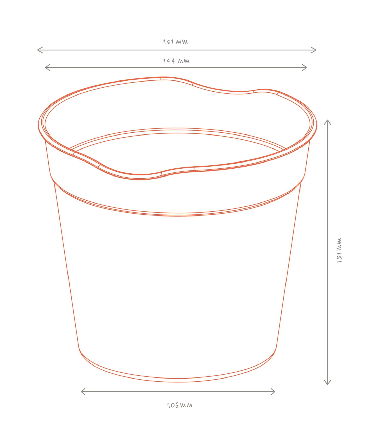 Legen Sie die Fingerspitzen auf die Rillen am oberen Rand des Topfes und die Daumen auf die Vertiefung in der Mitte des Bodens. Drücken Sie den Boden nach oben, um die Erde zu lockern und von den Seiten zu lösen. Die Pflanze kann dann herausgeschoben und in den nächstgrößeren Topf gepflanzt werden. Die Töpfe sind langlebig, so dass sie über mehrere Saisons hinweg wiederverwendet werden können, und haben eine strukturierte Oberfläche, die mit einem Bleistift zu beschriften.