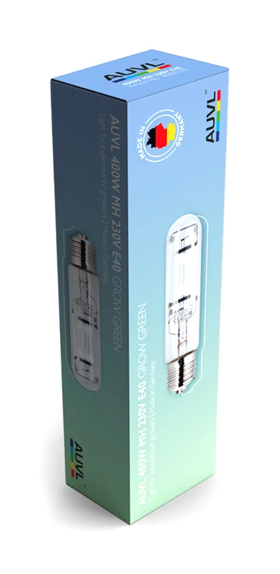 Die AUVL Grow Green Metallhalogenlampe stimuliert das Wachstum und sorgt für kompakte und kräftige Pflanzen. Sie verfügt über eine Quarzbogenröhre mit zusätzlichem Metallhalogenid, um die Effizienz und Farbwiedergabe des Lichts zu verbessern. Die AUVL Grow Green Metallhalogenlampe hat einen E40 Sockel und muss für den Betrieb an ein Vorschaltgerät angeschlossen werden. Mit 400 W erreicht sie einen Photonenstrom von 490 µmol/s und damit einen Photonenstrom pro Watt von 1,23 µmol/s.