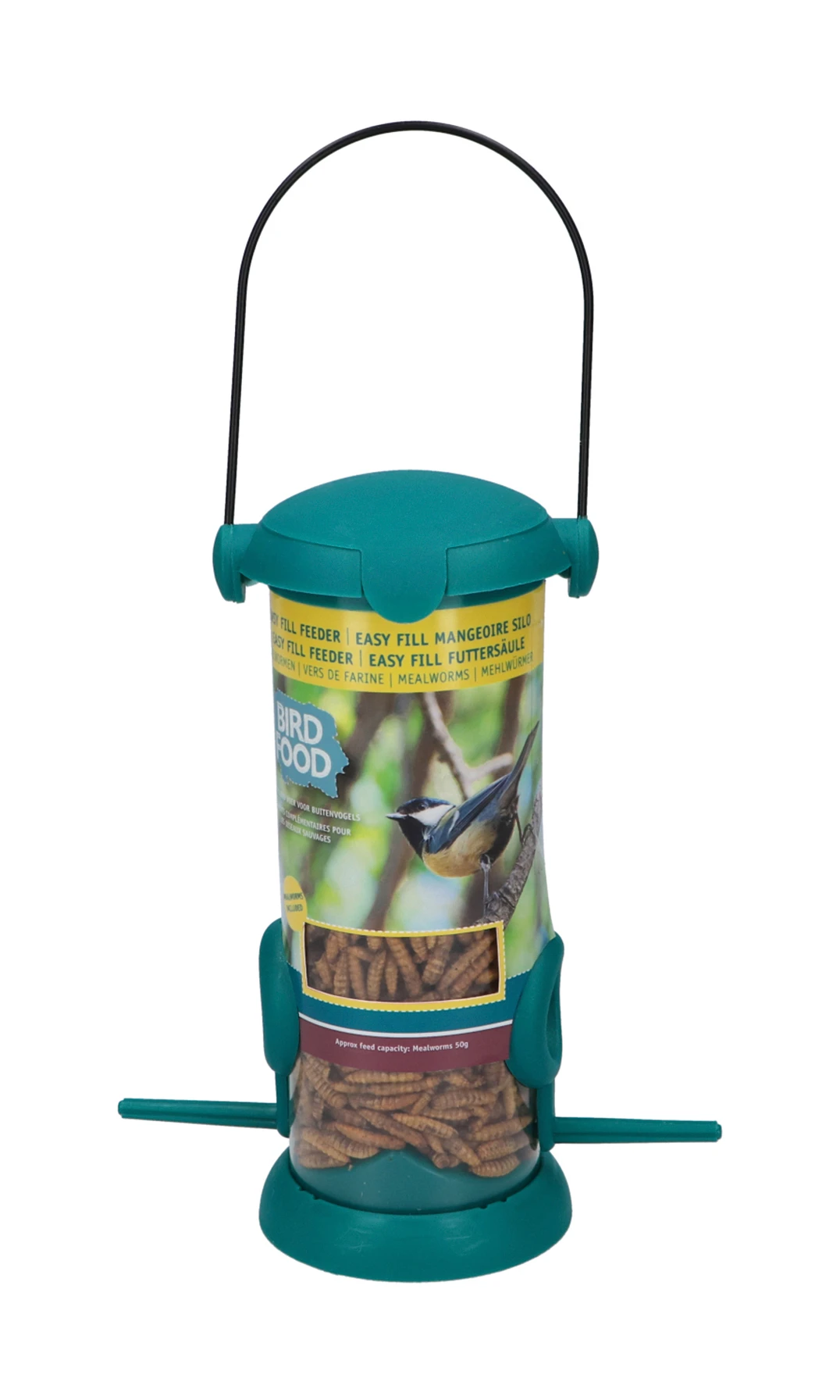 Easy Fill Futterautomaten bestehen aus strapazierfähigem Kunststoff und Metall.