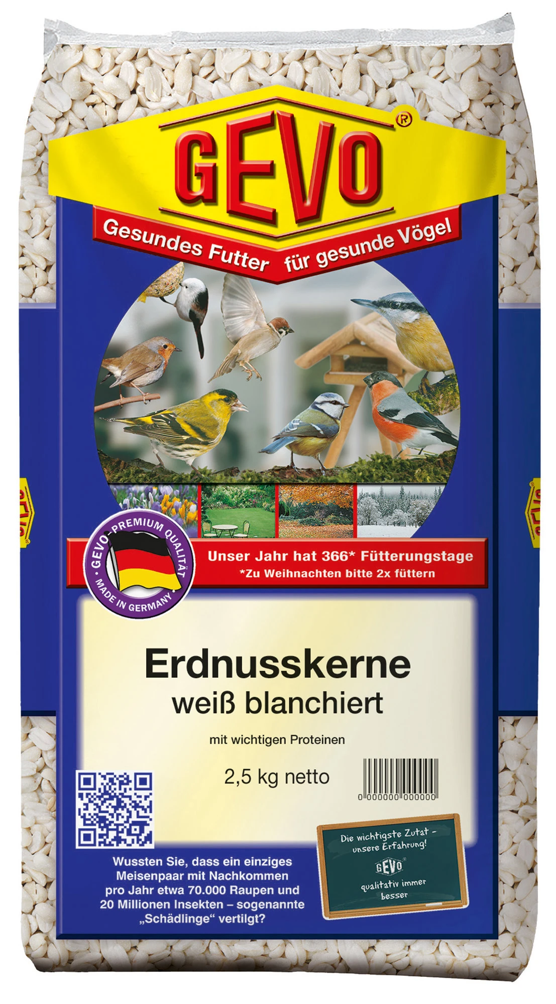 GEVO-Erdnusskerne weiß blanchiert oder in roter Haut, mit sehr hohem pflanzlichem Fett- und Eiweißgehalt aus den besten Anbaugebieten der Welt, stets aus frischer Ernte und garantiert frei von Aflatoxin. Der ideale Kraftspender 12 Monate im Jahr.