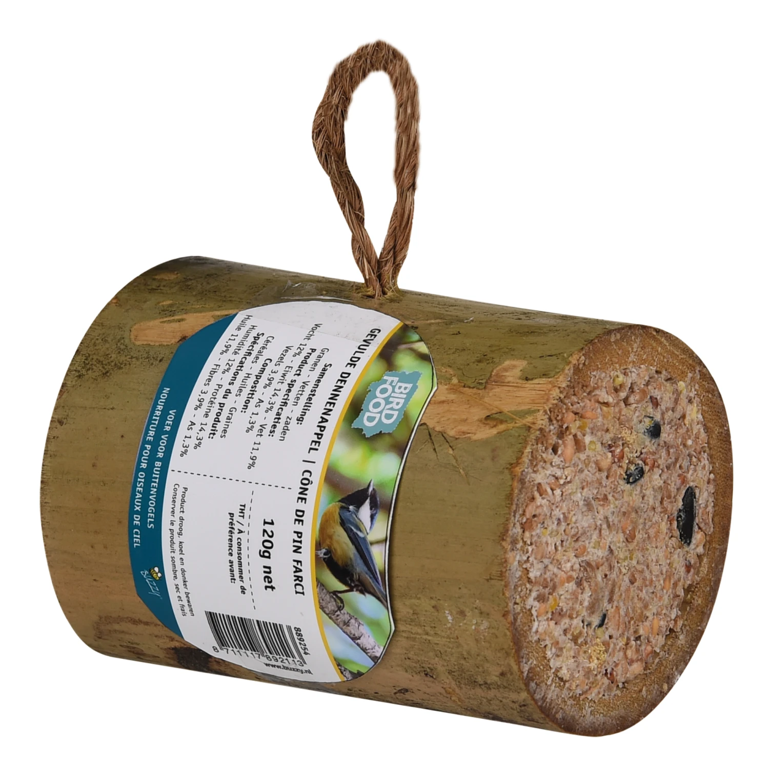 Einfach mit der Aufhängeschnur aufzuhängen. Eine reich gefüllte Bambusröhre mit Fett und Samen. Kann das ganze Jahr über gefüttert werden. Für alle Vögel geeignet.
