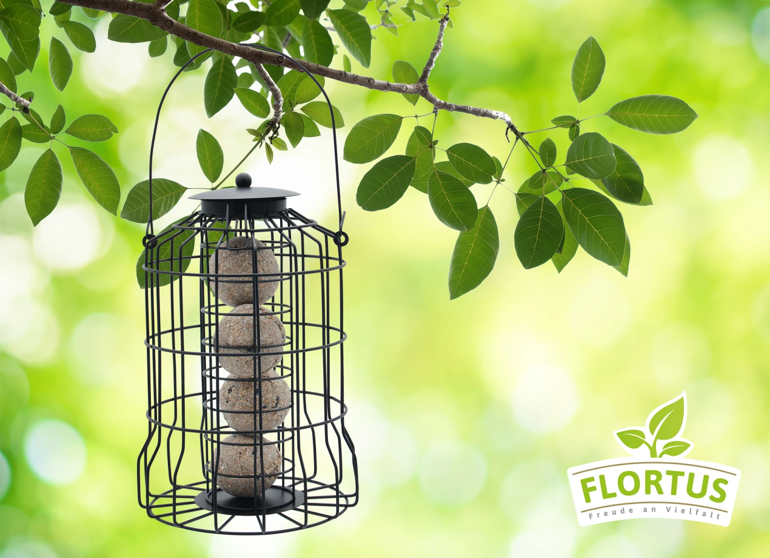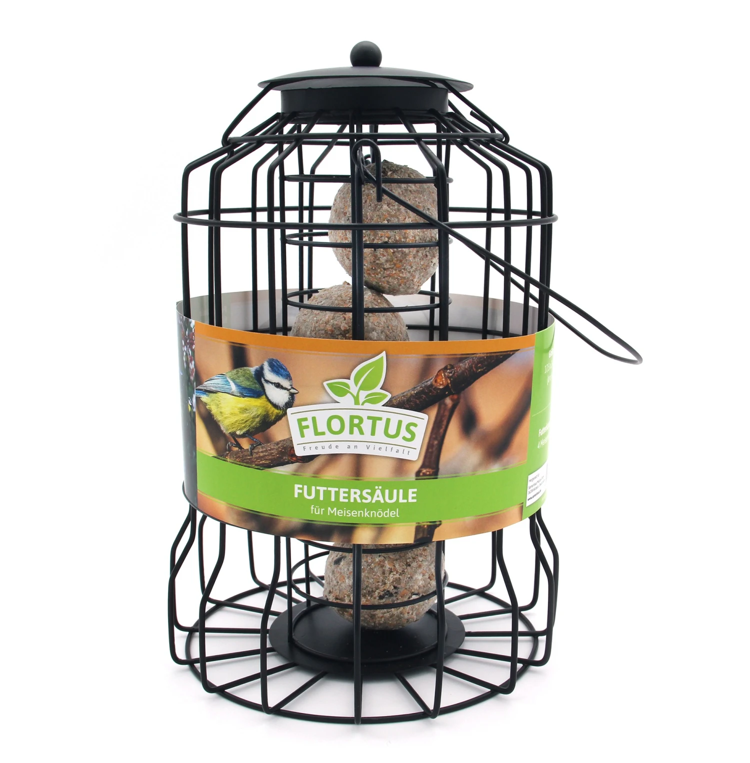 Der Futterspender für Meisenknödel kommt gefüllt mit leckeren Futterbällchen, die voller Fett, Körner, Beeren und Früchten stecken. Gerade im Winter sind Meisenknödel ein wichtiges Futter, das Vögeln viel Energie bietet, damit diese nicht erfrieren. Aber auch über den Sommer werden die Fettbällchen gern angenommen. Der Futterspender wurde extra für kleine Vögel wie Meisen, Finken und Sperlinge entwickelt. Nur diese können durch die engen Gitterstäbe ans Futter gelangen. Der Futterspender kommt komplett zusammengebaut und mit Meisenknödeln gefüllt. Sie brauchen nur noch einen sicheren und nicht vollsonnigen Platz für die Futtersäule wählen.