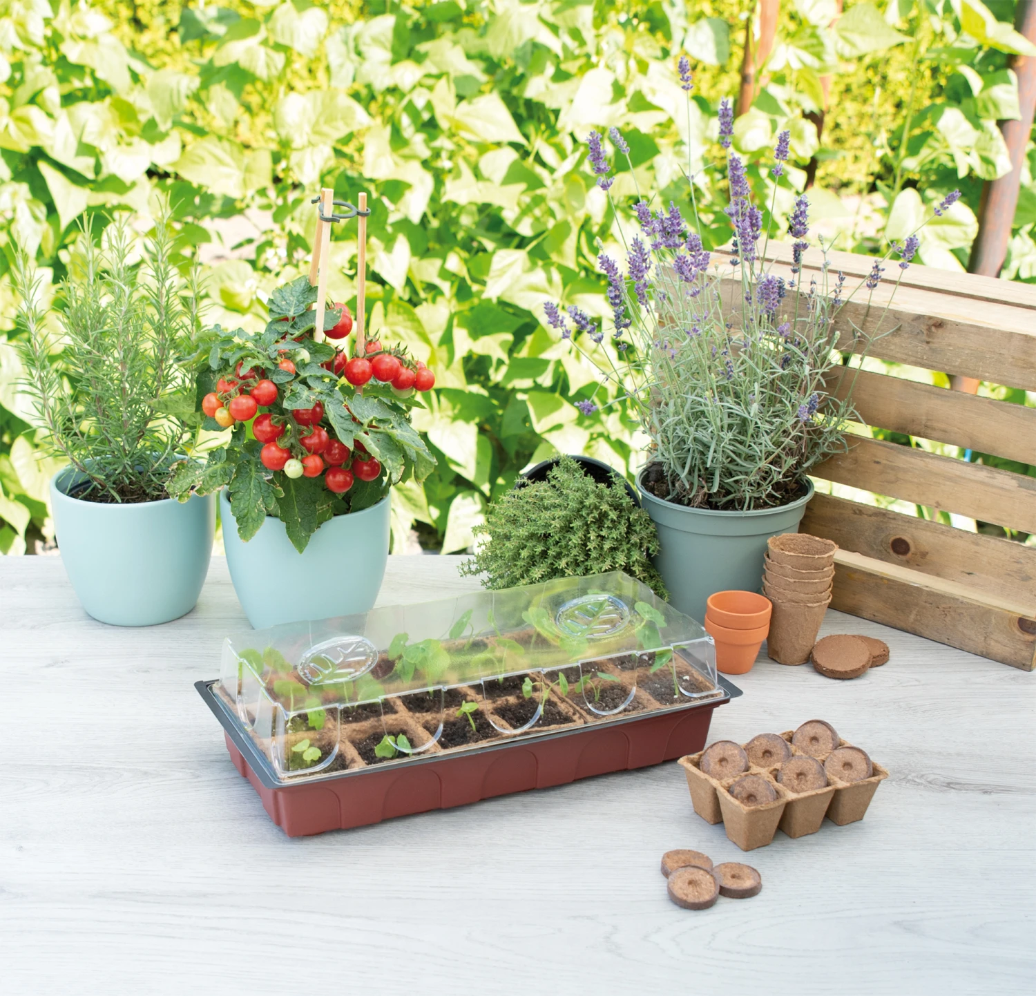 Dieses Minigewächshaus eignet sich ideal zum Kultivieren all Ihrer Samen und Stecklinge. Der Kasten passt auf so gut wie jede Fensterbank. Durch die transparente Haube schaffen Sie eine optimale Umgebung mit viel Licht und Wärme. Sie können die Pflanzen ganz einfach mit den Töpfen umpflanzen, ohne die Wurzeln zu beschädigen. Das Material vergeht in der Erde.