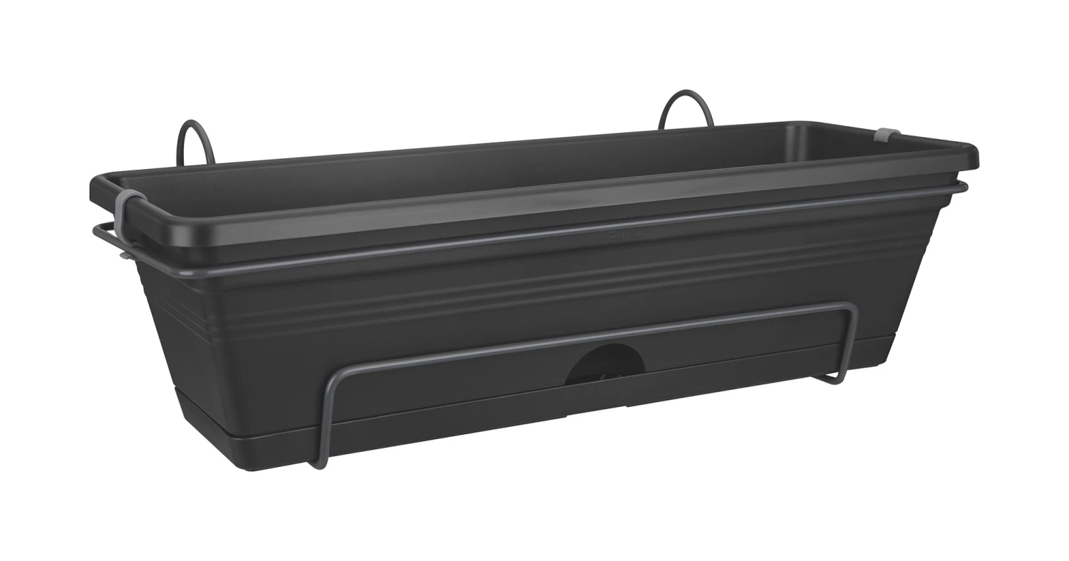 Ein klassischer Balkonkasten aus recyceltem Kunststoff mit einem dazu passenden Metallhalter. Und das alles in einem! Der Kasten vereinfacht sogar die Bewässerung – die Vorderseite ist mit einer Öffnung zum Gießen versehen. Falls einmal zu viel Regen fällt, wird das überschüssige Wasser im Untersetzer gesammelt. Sich an den Blumen auf dem Balkon zu erfreuen, war noch nie so einfach. Tipp Berücksichtigen Sie bei der Bepflanzung die Sonnen- und Schattenseite des Balkons.