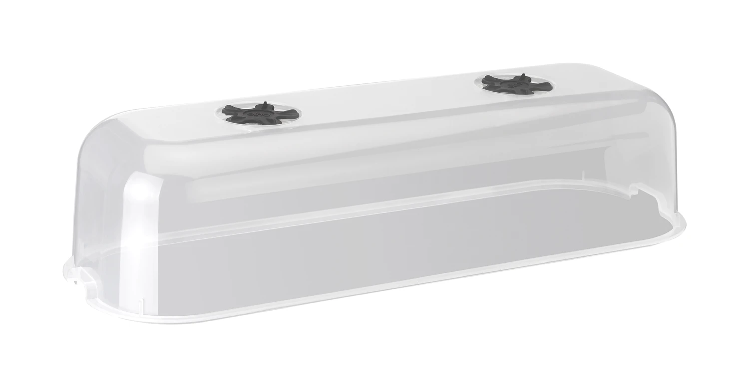 Bauen Sie nun mit dem Green Basics-Anzuchthaus von elho ganz einfach Ihr eigenes Gemüse und Ihre eigenen Kräuter an. Dieses Produkt wurde speziell in Kombination mit dem elho-Anzuchtkasten und der Schale entwickelt – so erreichen Sie ein optimales Wachstumsergebnis für alle Pflanzen, Kräuter und Gemüsesorten. Ein unentbehrliches Produkt während des Gemüsegarten-Kultivierungsprozesses; die Samen und Pflanzen sollen darin tatsächlich schneller wachsen. Die Haube ist mit einer praktischen Belüftungsscheibe versehen, mit der Sie die Luftzirkulation und die Temperatur selbst anpassen können. Darüber hinaus sorgt die Haube dafür, dass Schädlinge nicht in die Nähe der jungen Pflanzen/Samen gelangen. Das Anzuchthaus ist in drei Größen erhältlich. Alle Produkte aus der Green Bascis-Kollektion sind aus recyceltem Kunststoff hergestellt. Sie können die Haube ohne Probleme in die Sonne stellen, der UV-Filter sorgt dafür, dass die Pflanzen nicht verbrennen. Zudem ist er pflegeleicht und einfach zu reinigen.