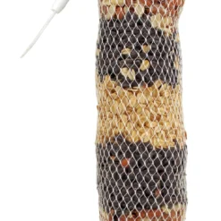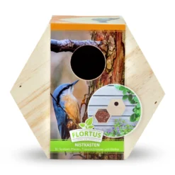 Holzhalter für Erdnussbutter um Glas, sowie Mehlwürmer in Fett im Glas. Unbehandeltes Holz, mit Dach und Sitzmöglichkeit, Maße: 15 x 18 x 13 cm