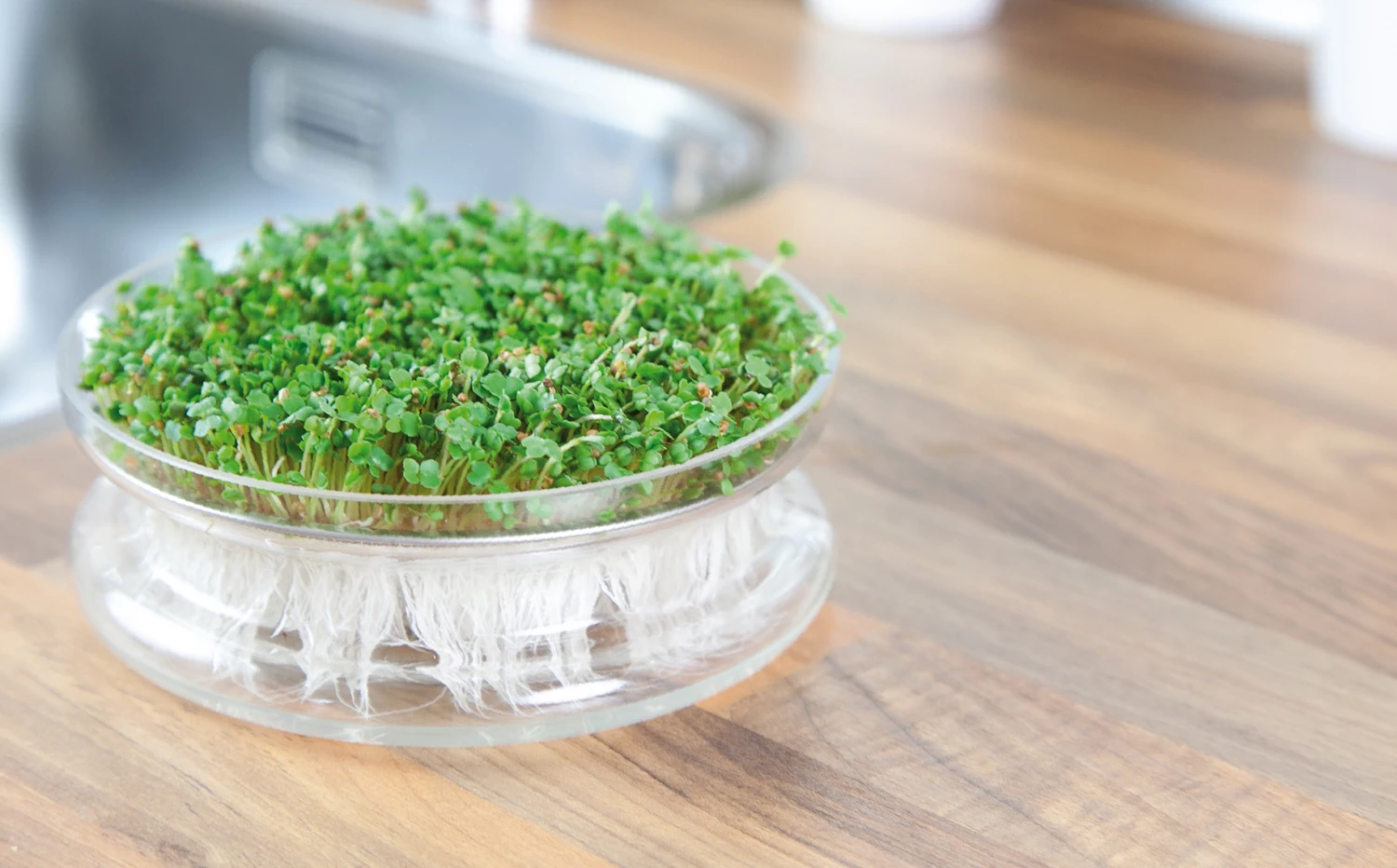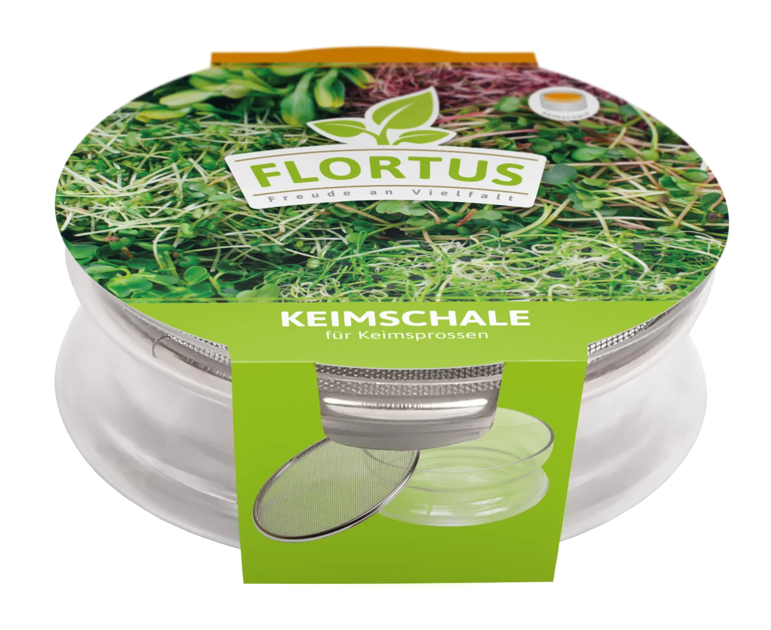In der Keimschale aus Glas lassen sich Sprossen ganz einfach ziehen. Zuerst wird das Saatgut in einem Sieb gut unter laufendem Wasser abgespült. Geben Sie den Samen Ihrer Lieblingssprossen in die Glasschale und fügen Sie warmes Wasser hinzu. Stellen Sie die Keimschale an einen warmen Platz und spülen Sie die Samen täglich. Der direkten Sonneneinstrahlung sollte die Keimschale nicht ausgesetzt sein. Je nach Sorte können Sie die Sprossen nach 3 bis 8 Tagen ernten.