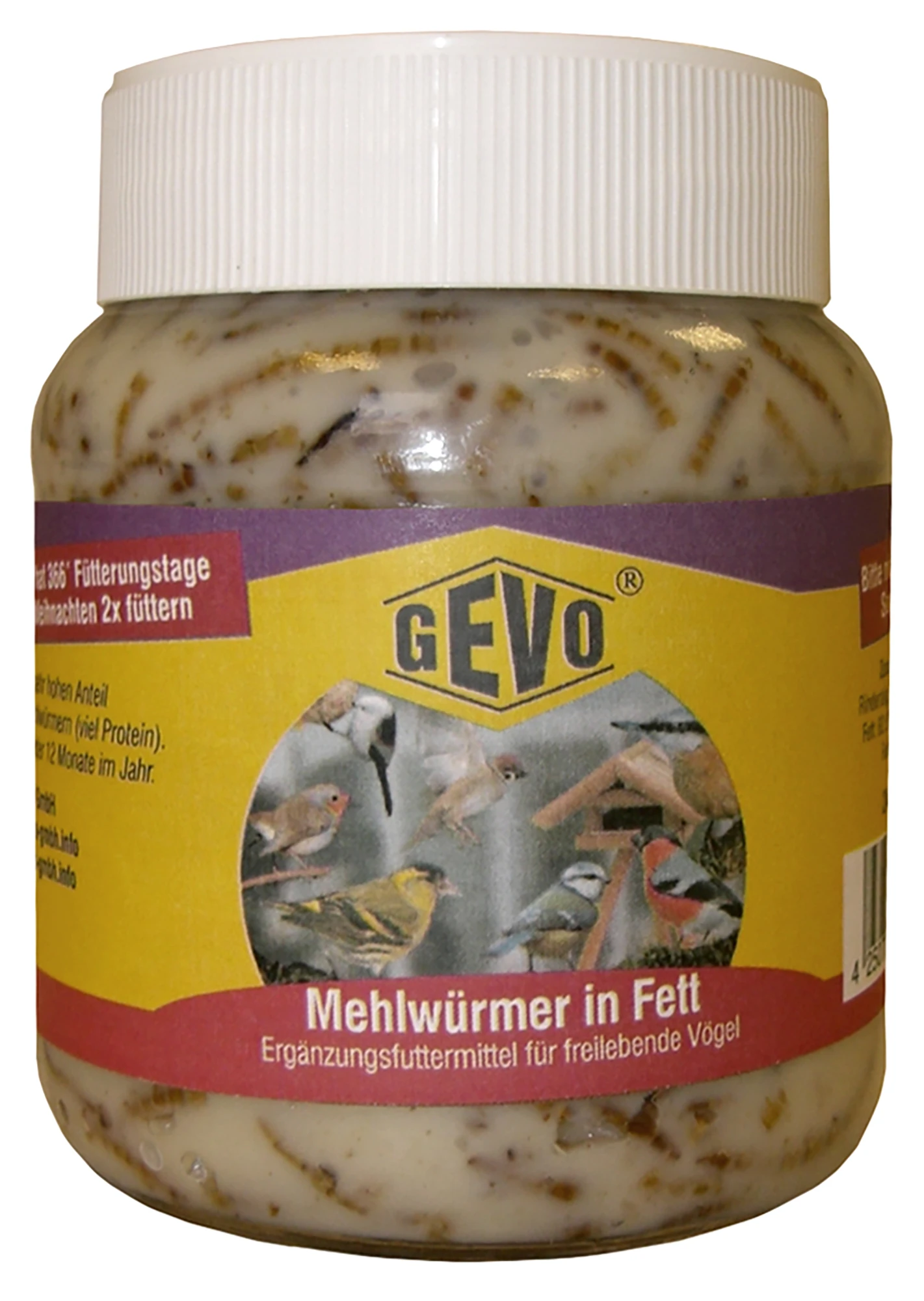 GEVO-Mehlwürmer in Fett im Glas sind ein nahrhafter und idealer Kraftspender während der anstrengenden Brutzeit.