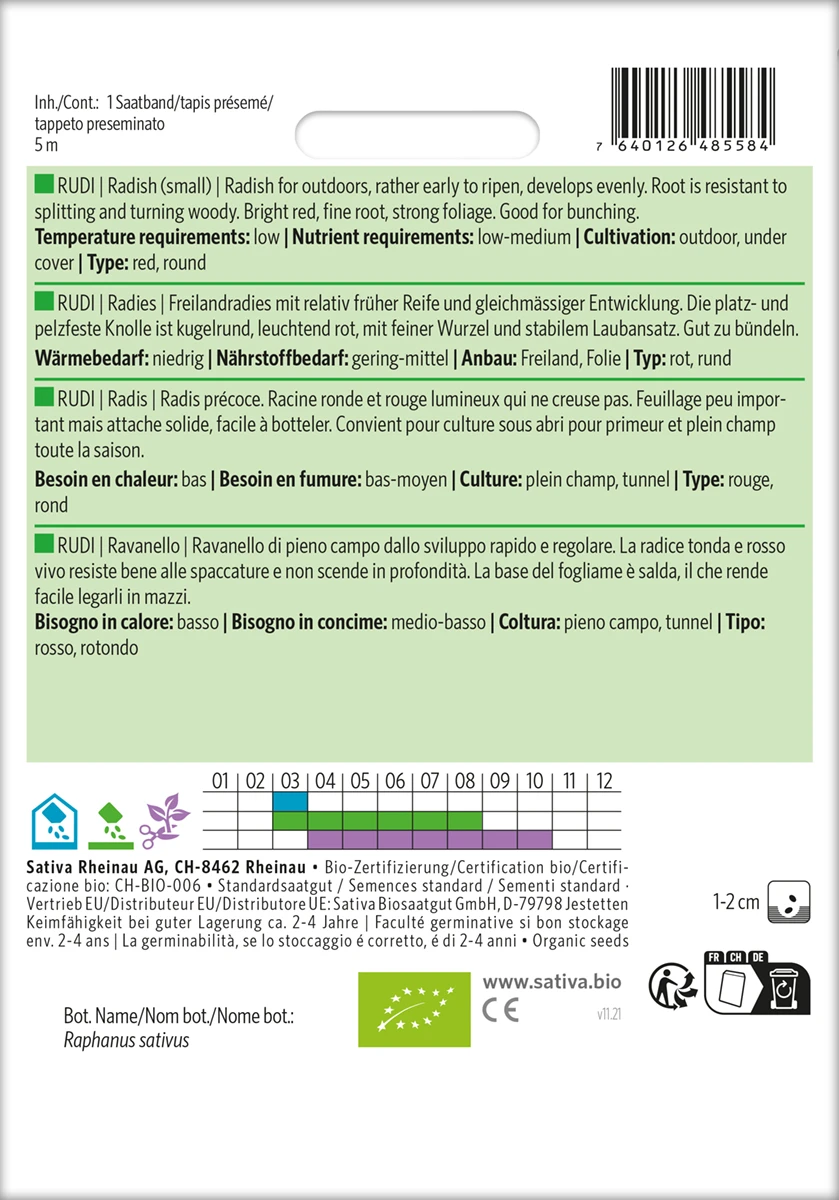 Radies Rudi (Saatband) | BIO Radieschensamen Von Sativa Rheinau