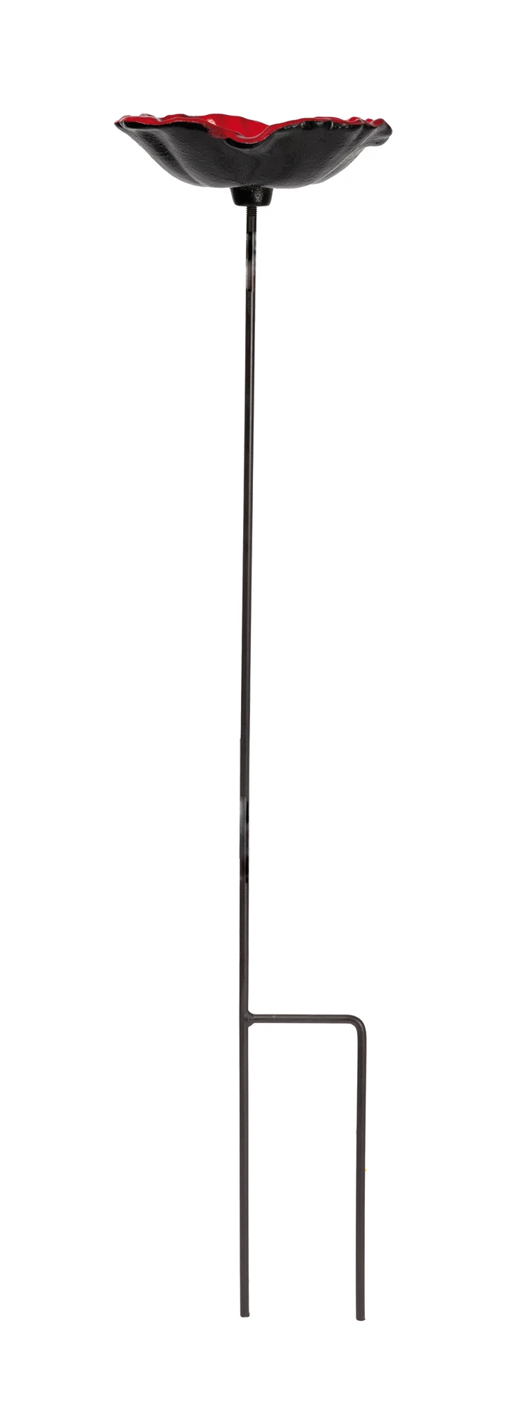 Dieser dekorative und praktische Futterstab in Form einer Mohnblume wird in Ihrem Beet oder Pflanzgefäß fröhlich aussehen. Füllen Sie die Mohnblume mit etwas Vogelfutter, um die Vögel in Ihren Garten zu locken. Kann auch als Wasserschale verwendet werden. Geeignet für alle Arten von Samenmischungen zur Fütterung der Vögel im Garten. Stabiler Doppelstift aus Metall zur festen Fixierung in jeder Oberfläche.